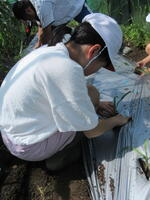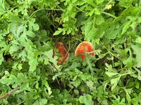 7月12日(金)、朝、農園を見てみると、またもやサルの被害がありました。先週、収穫前のスイカが全滅となりましたが、今度はまた実になる前のスイカ(まだ中は赤くなってもいません)をほとんど食べ尽くしてしまいました。幸い、トマトなどの他の野菜は被害に遭わずにすみましたが、サルの侵入がなかなかやみません。