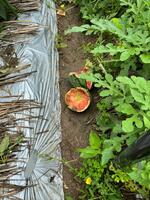 7月に入ってから、連日のようにサルが農園に侵入し、収穫前の野菜を食べてしまいました。特に、スイカの被害は甚大で、30個以上の被害が出ました。また、かぼちゃ、トマトなども被害に遭っています。さらに、さらにサルが侵入したことで、ほかの野菜もダメージを受けて生育に影響が出てきました。