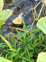 南農園は、すいかが被害に遭いました。赤くなってきたすいか10数個がさるの侵入により、食い荒らされてしまいました。よほどおいしかったのでしょう。すいかの皮だけ残して、中身だけきれいにかじったようです。校門付近のかぼちゃも2個食べられていました。今年は地区内でさるの被害が多いということでしたが、本校も万全ではありませんでした。7月4日からの野菜販売を目前にして、たいへん残念です。
