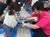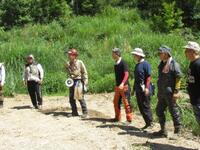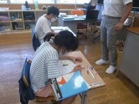 7月6日(土)は、はらはらわくわくふるさと体験隊(はらわく)の3回目で、今回のテーマは林業体験でした。まず、北川町家田の無田の森に行き、林業について学びました。見学したのは、植林された杉、空師による枝落としでした。また、班で杉の木の周りを計測する活動も行いました。さらに、昼食を挟んで、社会教育センターで、木工作品製作もしました。他の学校の友達と協力して、花台を作成しました。のこぎりなどを使いながら作品ができました。