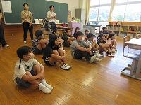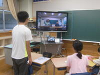 7月11日の朝の時間は、熊野江小学校とミートで朝の会でした。熊野江小の司会で、スピーチをしていきました。熊野江小からは、三川内小学校との水泳学習や地域の方とのふれあい活動のことがスピーチされました。浦城小学校からは、図工の作品の紹介、家庭科のスクランブルエッグの調理実習、農園のサルの被害とスイカ栽培などについてスピーチがありました。5人ともできごとを分かりやすく話していました。質問タイムでは、水泳の学習のこと、野菜の栽培についてのことなどを質問し合っていました。話題に沿って、聞いたり話したりすることができ、中身のあるミート朝の会でした。