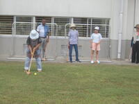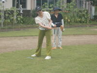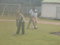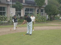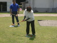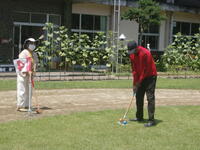 7月10日、連日の猛暑は少し和らいで、グランドゴルフを開催しました。雨が降ったりやんだりだったので、スコアを付けずに6ホールのゲームをしました。芝やグランドのコンディションはよかったのですが、今日は、ホールインワンは出ませんでした。雨の中、暑い中にも、和気あいあいのプレーで楽しみました。
