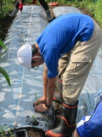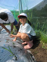 7月12日(金)、とうもろこしの苗を植えました。4月に植えたとうもろこしは既に実って野菜販売でも好評です。今回は第2弾で、秋に収穫するとうもろこしです。じゃがいもを収穫した後に植えました。それぞれみんなで協力して手際よく植えていきました。合計、104本、秋の収穫が楽しみです。