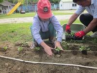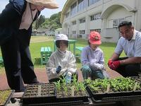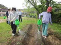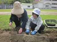 4月30日(水)、先日種まきをして育った野菜の苗を、学校畑に移植しました。今回は、「ラディッシュ」です。子どもたちは、子葉や本葉をよく観察した後、小さな苗を手に取り、苗を入れる深さや土のかぶせ方、押さえ方などに注意しながら、ていねいに移植していきました、最後には、「大きく育ってね!」と願いを込めながら、やさしく水やりをしていました。翌日の5月1日(木)には、「にんじん」と「とうもろこし」の苗も移植しました。これからのお世話が忙しくなりますが、観察や水やりなどをがんばってほしいですね。お世話は大変だけど、野菜を育てたり、収穫したりするのがとても楽しみだと話している子どもたちです!