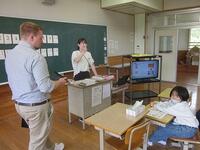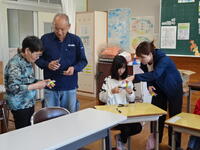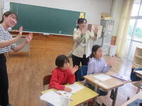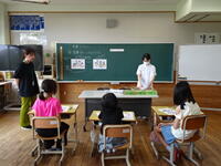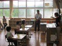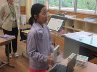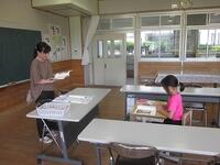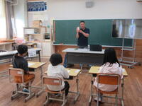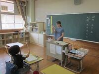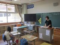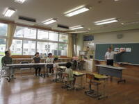 午前中は、算数、国語、体育、社会の4教科を、在校児童と一緒に学習しました。ペアで自分の考えを発表し合ったり、考えの違いを確認し合ったりしながら、少人数での学び合いを体験していました。本校の子どもたちも喜んでいて、よい刺激にもなっていました。