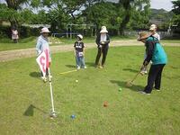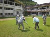 5月12日(月)の午後、本校にて地域の方々との「ふれあいタイム」を実施しました。ふれあいタイムとは、子どもたちと地域の方が、グラウンドゴルフを通してふれあう時間(雨の日には、ボッチャも計画しています)のことです。今年度は、月に2回計画しています。1チーム(5~6名)に児童・職員・地域の方が入り、3チームに分かれて、グラウンドゴルフや会話を楽しみました。どのチームからも、「ナイス!」「おしい!」などの声があがり、笑いや温かい拍手などがある中での、心がほっと和む時間となりました。本日は、ホールインワンを出された地域の方もいらっしゃいました! 本校の素敵な取組の一つです。