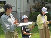 ③「熱中症予防」・・・熱中症情報に気を付けながら生活しているところですが、子どもたちが、熱中症予防のために大切なことを、覚えやすい言葉で話しました。合言葉は、「あ!すいか」です。
