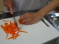6月5日(木)、野菜園で育てている「ラディッシュ」の一部収穫をしました。これは、来週6月14日(土)に本校で行われる「オープンスクール」に向けて、ラディッシュの育ち方や味などの確認をするためです。子どもたちは、収穫した色とりどりのラディッシュを薄く切り、味見をしました。「甘さ」や「辛み」など、色によってそれぞれに特徴があることにも気付くことができました。また、販売する際、お客さんにどのように野菜のおいしさを伝えるか、どうアピールするかの勉強にもなりました。浦城小の子どもたち、素敵な学びをしています!