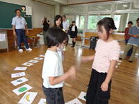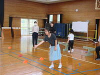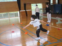 ①ALTと一緒に外国語に親しみながら、ボール遊びを楽しみました。このゲームをとても楽しみにしていたようで、わざわざ、校長室まで「今から始まります!」と嬉しそうに声をかけに来てくれました。
