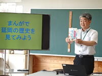 6月27日(金)の朝、平和について考える時間をつくりました。延岡市にとって、80年前の6月29日は「延岡大空襲」の日であり、尊い命が多数失われた、つらく悲しい歴史があります。この歴史を子どもたちにも伝えるために、今回は、「まんが のべおか歴史物語」を活用して話をしました。真剣なまなざしで漫画の一コマ一コマを見て、聞いていた子どもたち。「平和って?」の問いかけに、「楽しいこと」「笑顔であること」などと自分なりに考え、反応していた子どもたち。子どもたちが生きる未来も、平和な日々が続いてほしい、平和な世の中をつくってほしいと改めて考えさせられた時間でした。最後は、SDGs(持続可能な開発目標)の16番に「平和と公正をすべての人に」があることにふれ、特に今日一日、「平和」について考えていきましょうと話を終えました。先日の沖縄全戦没者追悼式で小学校6年生が朗読した「平和の詩」の中にあったように、「人の命を奪い苦しめる戦争を二度と起こしてはいけない」、「これまでご先祖様が繋いでくれた命を大切にして一生懸命に生きていく」、本当にそうありたいと考えます。