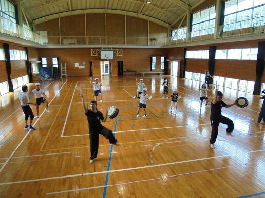 昨日(10日)、九州保健福祉大学生4名が来校し、エイサーの合同練習をしました。