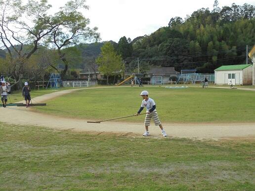 今朝は、運動会前なので、みんなで運動場の整備をしました。