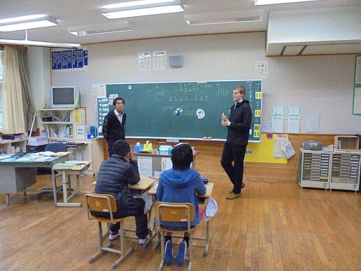 3時間目に3,4年生、4時間目に5,6年生の外国語活動の授業に入っていただきました。