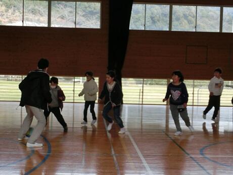 本日は体育の時間にエイサーの練習をしました。保健福祉大学の学生さんが3名指導に来てくださいました。