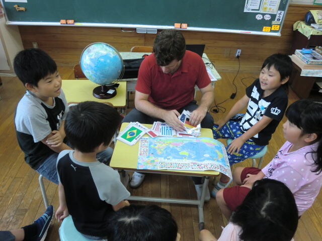 ALTのニルソン先生と、世界各国のあいさつを勉強しました。