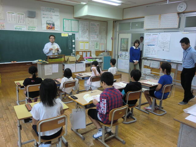 3,4年生は、そろばんの先生に来ていただいて、いっしょにパチパチ練習しました。