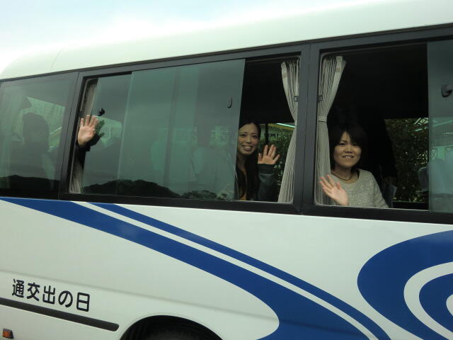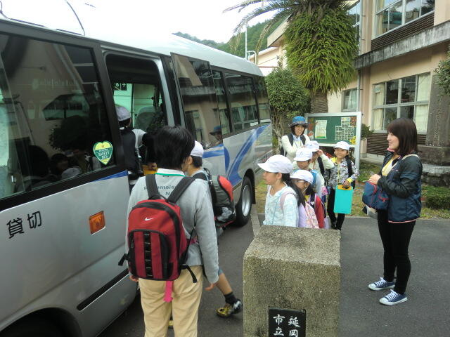 浦城小を出発した後、熊野江小学校・南浦中学校に寄って合流し、一路大分へ向かいます。