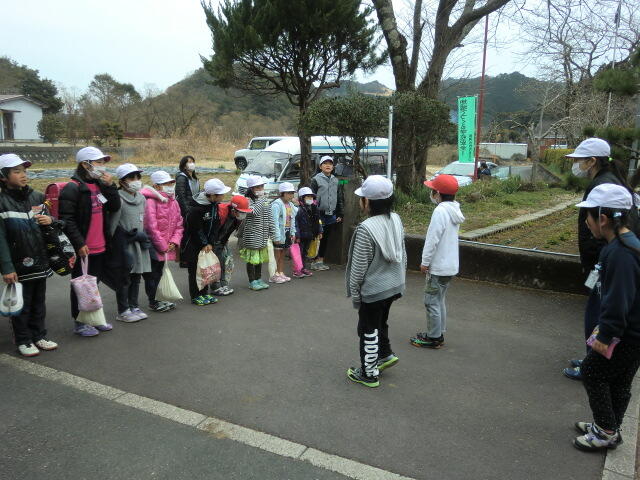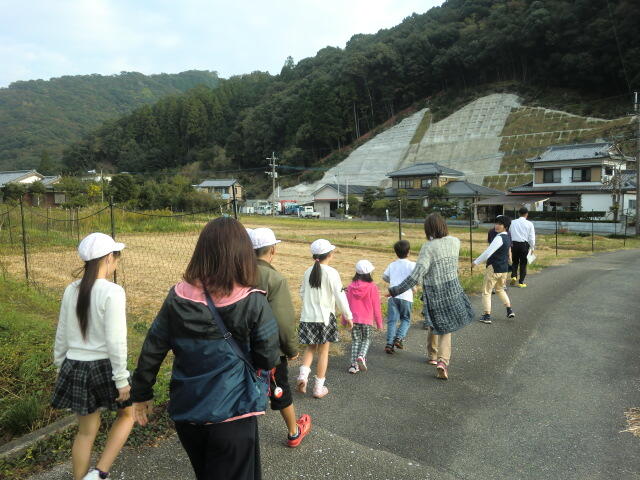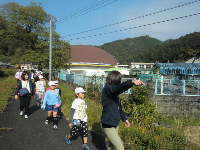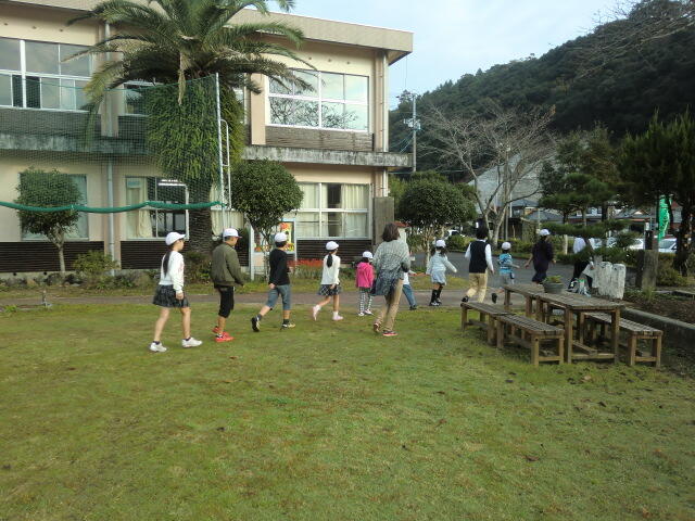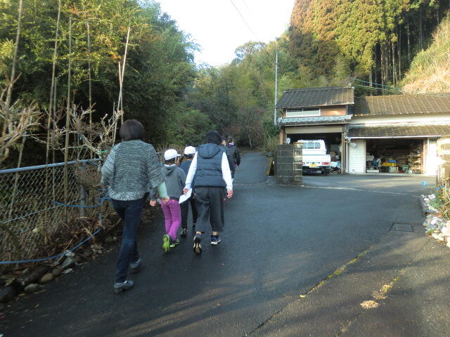 旧浦城保育所前。2,3年生はここでUターンして学校へ戻ります。