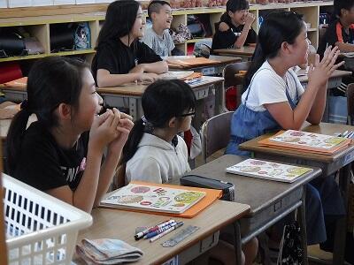 旭小学校で授業、給食、昼休み、掃除等の活動を一緒にさせてもらいました。