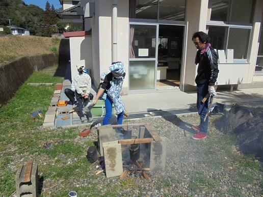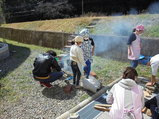 その次に図書室での宝探し。それが終わるとカレー作りです。飯ごう炊爨班とカレー作り班に分かれます。