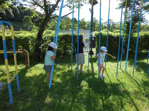 遊具は子どもたちが実際に遊んでみて安全を確認します。