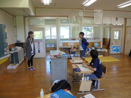 授業は3時間目から5時間目まで一緒に行いました。給食も昼休みも一緒です。