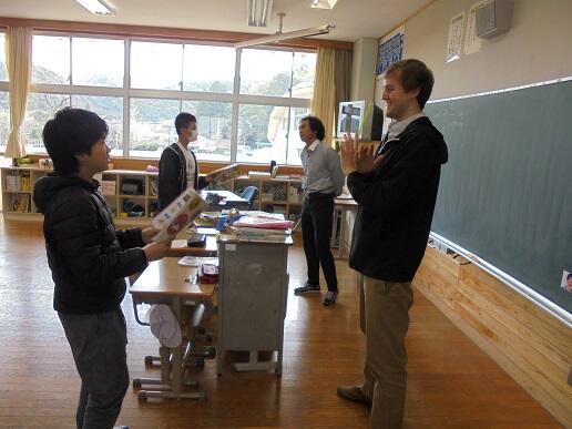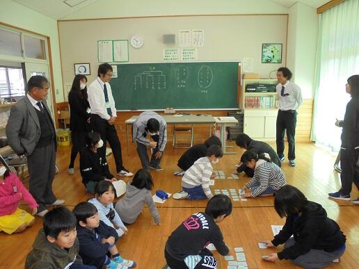 1時間目は5,6年生、2時間目は4年生の外国語活動の授業に入ってもらいました。