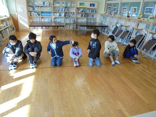 天気が心配されたので2時間目に運動場でグラウンドゴルフ、3時間目に学習室で昔の遊びをしました。