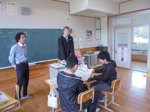 韓国人の女性とイギリス人の男性と主任の日本人男性、3名が来校されました。