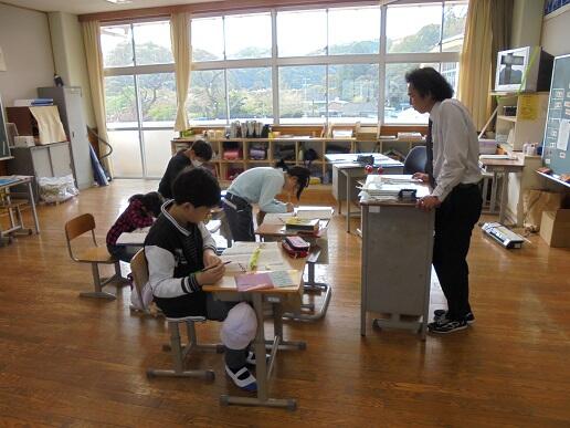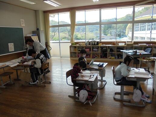 1年生と4年生は国語、5,6年生は算数の授業でした。