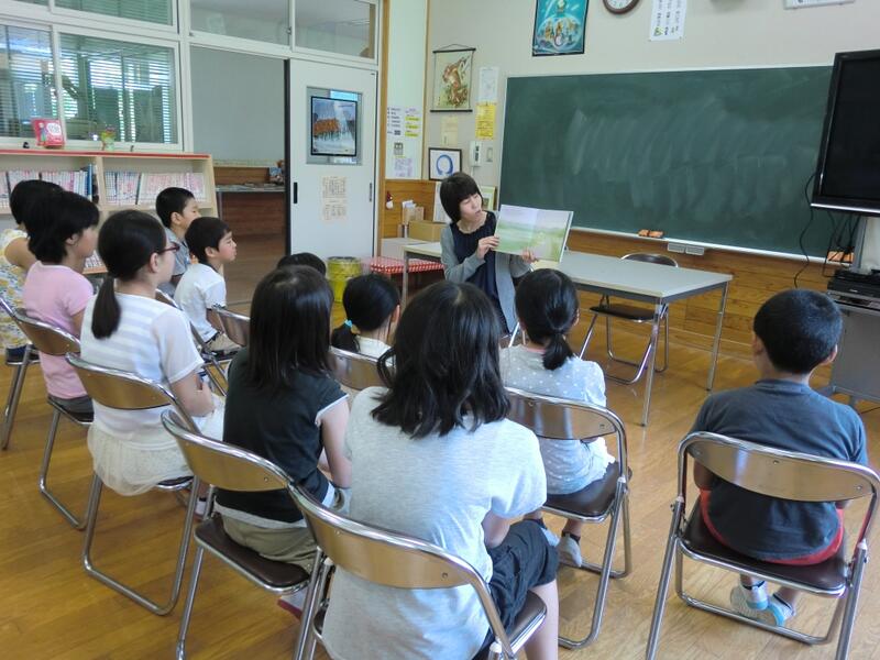 延岡市立図書館から支援担当司書の方に来ていただき、読み聞かせの会を行いました。