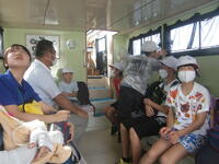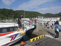 朝はまず路線バスで下阿蘇まで移動です。途中、熊野江小も合流して、海上タクシーで島野浦へ渡りました。天気がよく海も静かで渡ることができました。