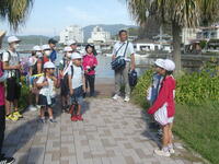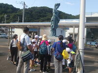 島野浦に着くと、島野浦学園の2年生が出迎えてくれました。早速、島の案内をしてくれました。生活科の町探検の学習の成果を見せてくれました。