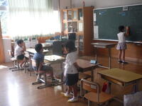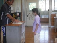 開会式、閉会式の練習を中心に行いました。入場行進は、1回めより上手にできて、堂々と行進することができました。また、姿勢や礼など練習したことがよくできていました。ラジオ体操もだいぶ上手になっていました。