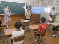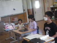 合同の授業では、午前中、低学年は生活科、高学年は国語の授業を3校で行いました。午後は、低学年は体育、高学年は外国語の授業を受けました。英語の授業は、島野浦学園の後期課程(中学校)の先生とALTが担当してくださいました。