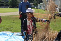 まずは、稲刈りの作業です。稲刈りの仕方を教えてもらった後、それぞれで稲刈りです。専用の鎌を使って稲の下の部分を刈りました。5年生はこれまでの経験もありスムーズにできました。1年生もがんばりました。