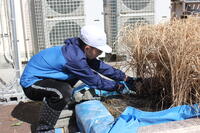 男性の方々には、運動場東側の剪定や草刈りなどを中心にお願いしました。不要な樹木も切っていただき、すっきりしました。女性の方々には体育館のお掃除をお願いしました。窓や2階の通路などとてもきれいになりました。