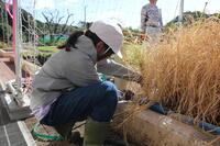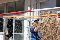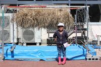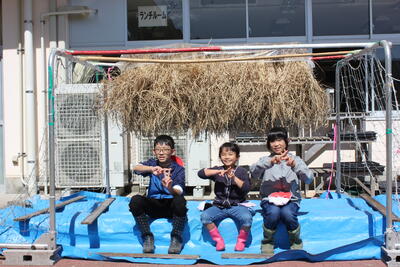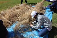 刈った稲は麻紐で縛っていきました。後半は、束ねた稲を棒にかけていきました。5年生は自分でかける作業を体験です。きれいにかけていくことができました。