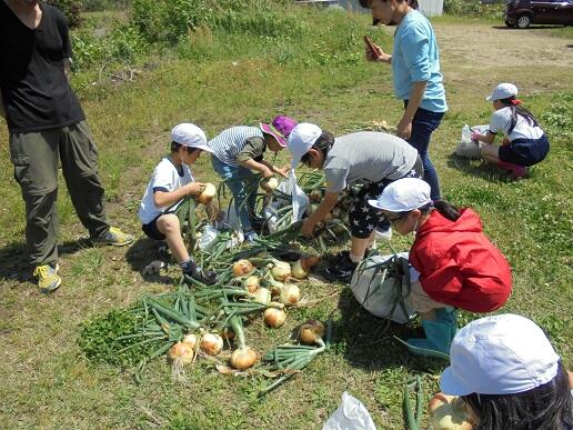 子どもたちは大喜びです。一人一人が袋いっぱいのタマネギを持って帰りました。