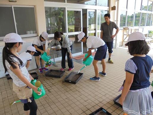 5月17日(木)の3時間目に総合的な学習の時間を使ってみんなで種まきをしました。