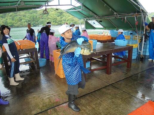 船の上にもいろんな魚がいます。生け簀の見学もしました。