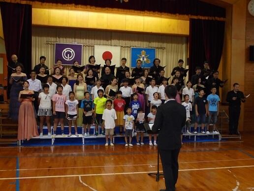 各学校の校歌を歌ってくださったり、「きみをのせて」を児童・生徒と合唱してくださったり