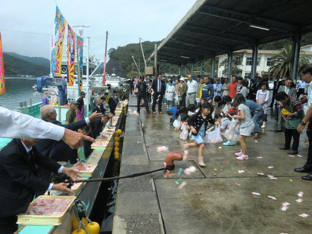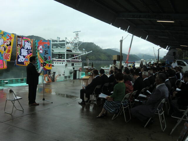 浦城港で行われた船の進水式を見学しました。