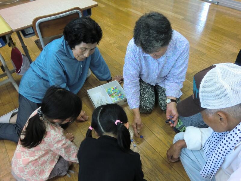 浦城小学校では、土曜授業の目的の一つである「開かれた学校づくりの推進」を考慮し、第1回目の今日は高齢者との交流会を計画しました。雨天のため、グラウンドゴルフはできませんでしたが、室内で昔の遊びを教えてもらいながら楽しい時間を過ごしました。