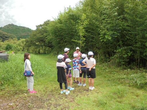 昨日自分たちで作った釣り竿で釣りをします。今日は朝からえさのミミズをとりました。
