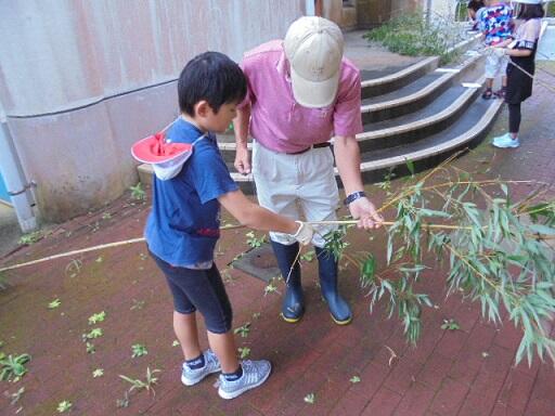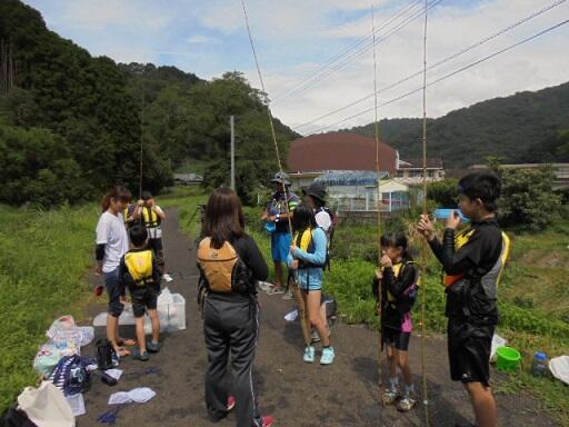 明日は手作りの竿で魚釣りをします。それから水生生物調査も行います。