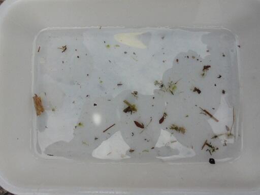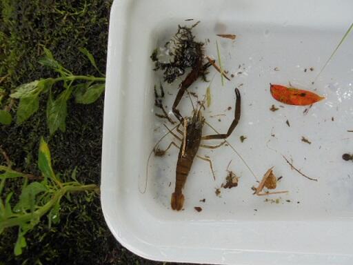 網で川底を探るとエビや川虫、小魚が捕れました。それらは綺麗な川にしか生息しない生物だそうです。