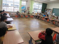 10月31日(木)の4校時は、港小学校とミート道徳の授業でした。教材は「くりのみ」。お話を読んで、親切にすることややさしさについて考えました。授業の最後に、「困っている人がいたらどうしますか。」という問いに、食べ物などを分ける、仲よくするなどの意見が出ていました。日常の中で進んで親切にすることができるといいですね。