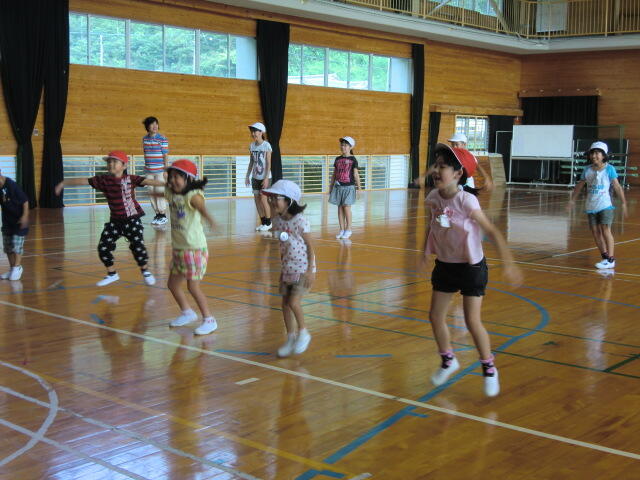体育館で「ぐんぐんタイム」を行いました。今日の内容は、軽快な音楽に合わせ体を思い切り動かすダンスエクササイズです。