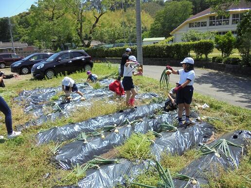 子どもたちは大喜びです。一人一人が袋いっぱいのタマネギを持って帰りました。